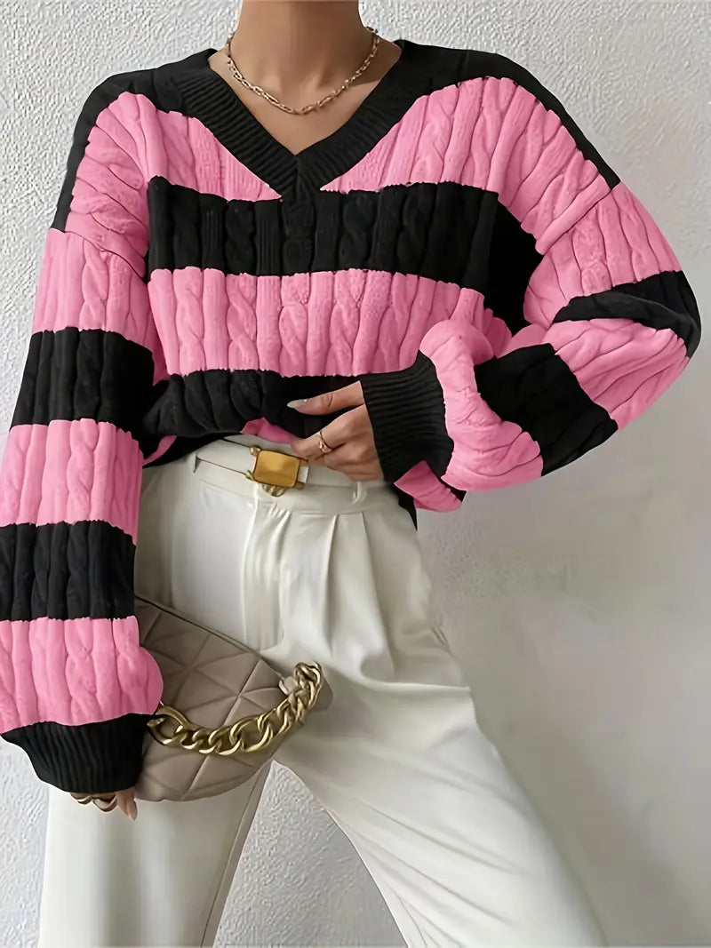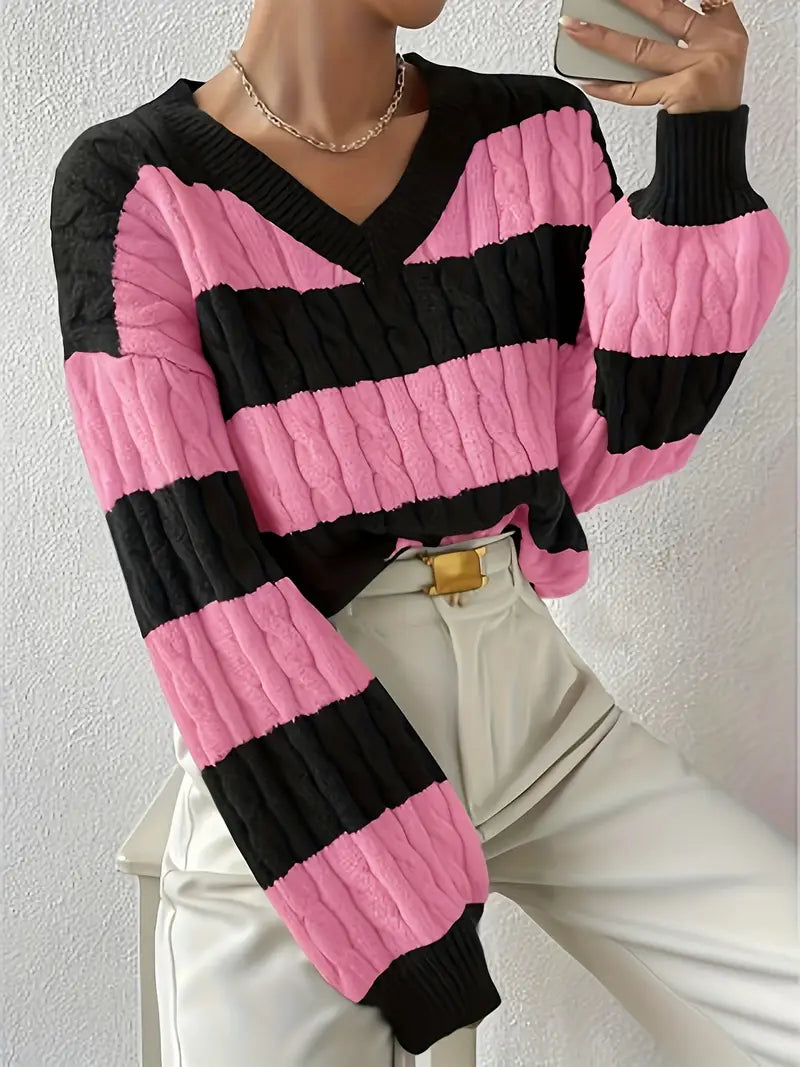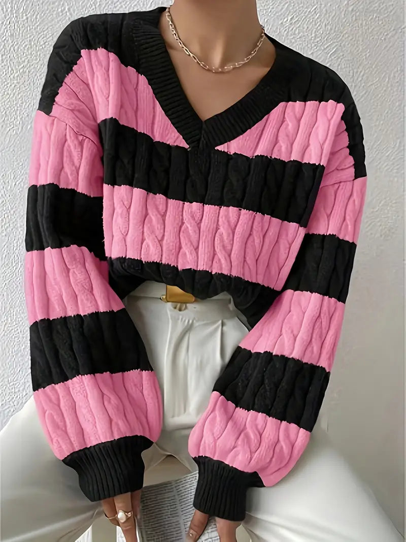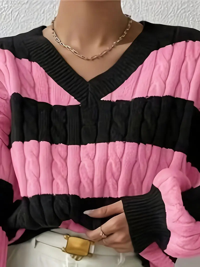 Tvåfärgad Stickad Tröja | Tillsammans mot Bröstcancer